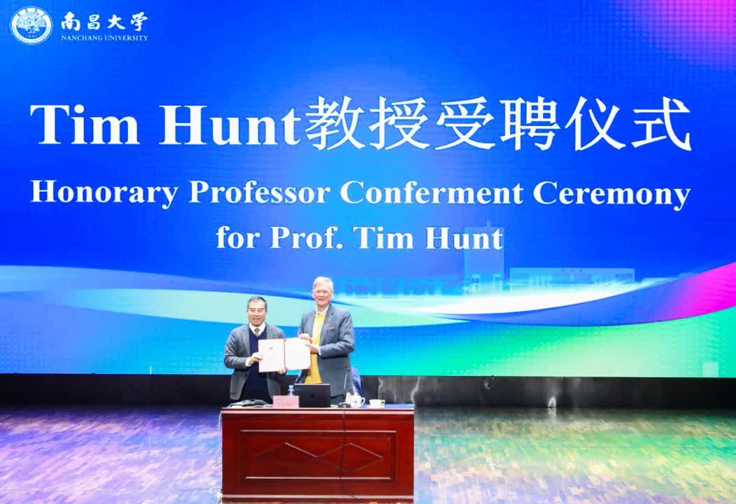 编者按:3月1日,江西省教育厅官网以《诺贝尔奖获得者Tim Hunt教授来南昌大学交流访问》为题,报道我校与江西省科技厅共同主办的“海智惠赣鄱-诺奖得主江西行”活动,活动邀请了诺贝尔奖获得者Tim Hunt教授来校交流访问。详情如下: