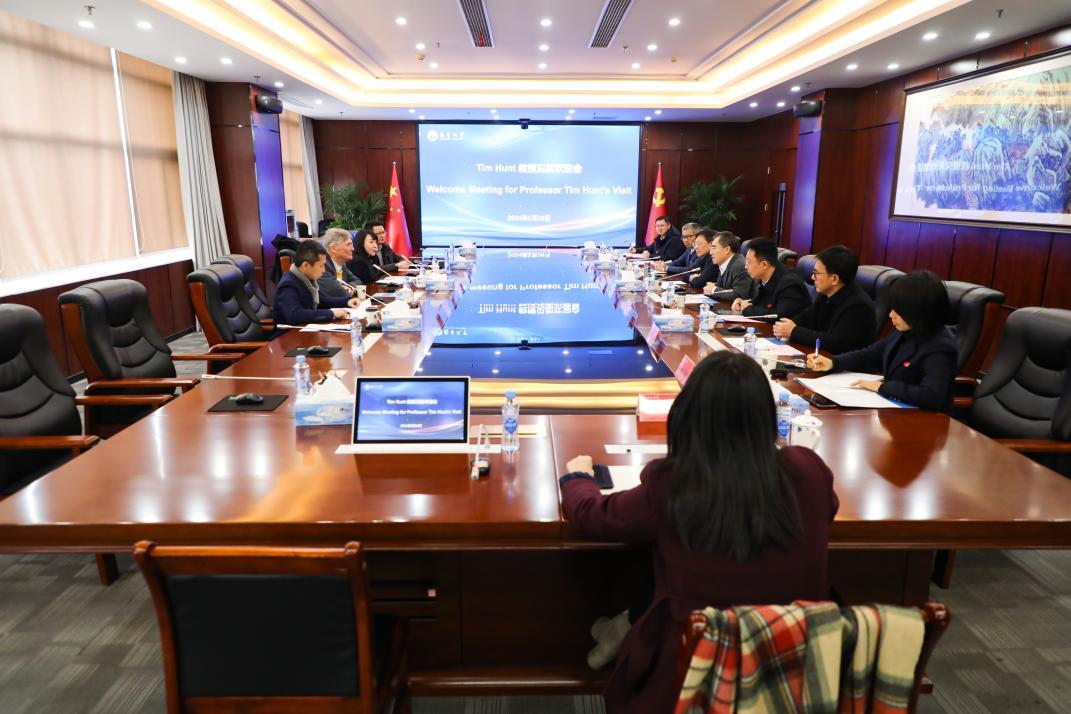 罗嗣海主持见面欢迎会,对Tim Hunt教授的到访表示热烈欢迎,高度评价了Tim Hunt教授的研究成果和科研精神。他表示,Tim Hunt教授来校访问,交流学术,分享观点,将有利于南昌大学不断推进学术创新,提高人才培养质量。希望能与Tim Hunt教授开展合作,为增进中外学术交流互鉴,推进构建人类命运共同体贡献智慧和力量。