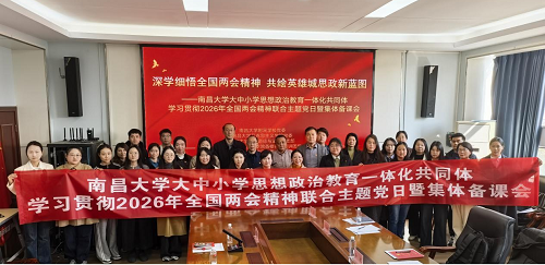 3月13日下午,2026年全国两会闭幕次日,南昌大学大中小学思想政治教育一体化共同体在附属学校举办“深学细悟全国两会精神 共绘英雄城思政新蓝图”联合主题党日暨集体备课会活动,第一时间推动两会精神进教材、进课堂、进头脑。来自共同体的南昌大学马克思主义学院、南昌大学附属学校及江西软件职业技术大学、江西建设职业技术学院、江西洪州职业学院等成员单位的党员师生、教育工作者齐聚英雄城,以“师资联育、课程联建、场域联动、成效联评”的实际行动,在“十五五”规划开局之年展现大中小学思想政治教育一体化新作为。