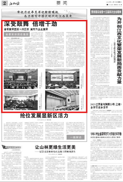 大家表示,要更加紧密地团结在以习近平同志为核心的党中央周围,在省委、省政府的坚强领导下,聚焦“走在前、勇争先、善作为”的目标要求,牢记嘱托、感恩奋进,全力以赴建设制造强市、打造区域中心,为谱写中国式现代化江西篇章贡献力量,以实干实绩回报习近平总书记和党中央的深情大爱。