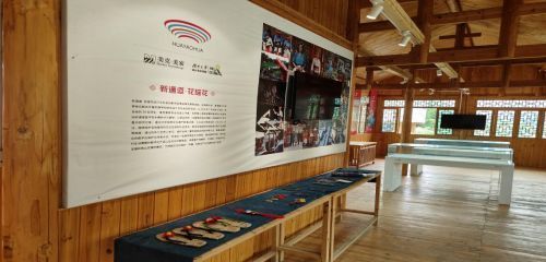 接下来,南昌大学华夏之音团队成员更是有幸参观了当地的省级非物质文化遗产,观赏了花瑶挑花手艺,跟随当地居民哼唱了呜哇山歌,学习了花瑶婚俗知识。本次实地体验的花瑶文化体验路线上,还设有花瑶服饰展、花瑶商铺、神仙豆腐坊、瑶山米酒坊、草编工艺坊、腊肉糍粑坊、瑶山茶馆、植物染坊、花瑶挑花以及隆回滩头年画展等精彩内容。每位成员都被这些魅力丰富的非遗传统所吸引。团队成员更是与当地的居民和传承人热烈探讨在这个新时代下如何让这些美丽的非遗文化传承弘扬的问题,成员们和传承人一致指出需要推动传统产业的升级和转型,强调科技和经济的深度融合,鼓励科技创新在经济文化中的应用和推广,帮助其更好地传承和发展,他们理应大力支持有想法有能力有技术的年轻人去做这些对增强文化自信有价值有意义的创新创业活动,打造专属隆回县的科技推动文化传承之路。