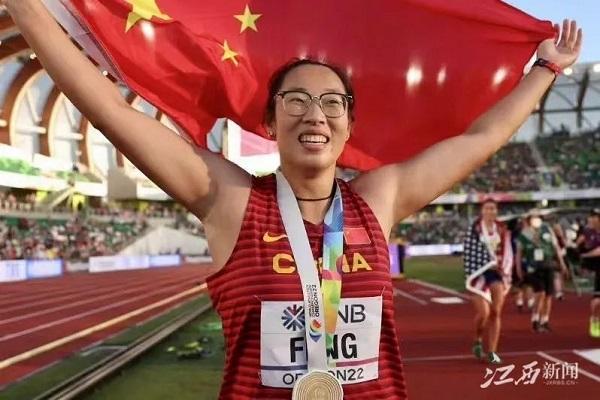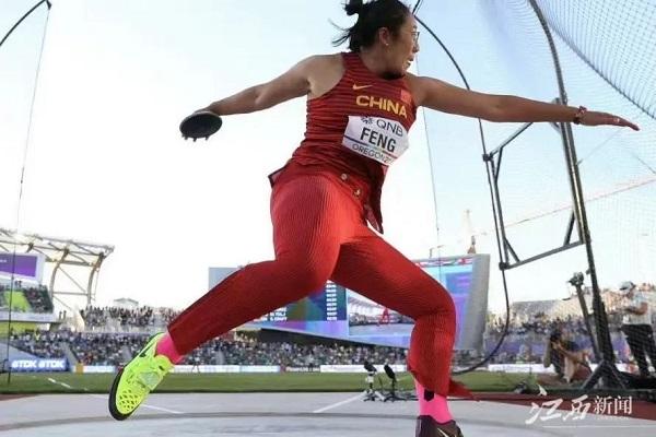 北京时间7月21日,2022年俄勒冈田径世锦赛,在美国尤金结束第6天的争夺。南昌大学体育学院学生冯彬发挥出色,在女子铁饼决赛中,第一投就掷出了69.12米成绩,战胜各国强手夺得金牌!