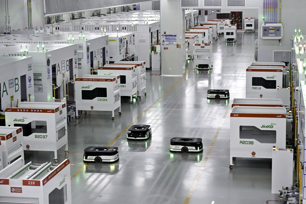 2025年7月12日在江西省上饶市经济技术开发区拍摄的晶科能源有限公司“智能大工厂”。“中国的绿色转型正通过系统创新成为推动高质量发展的强大引擎。特别是在新能源汽车领域,我们正目睹着技术突破、产业协同与市场拓展的高效融合。”江西财经大学英国籍讲师卡尔说,凭借完整的产业链和持续的技术进步,中国正降低清洁技术的应用门槛,并推动全球交通领域的低碳转型。