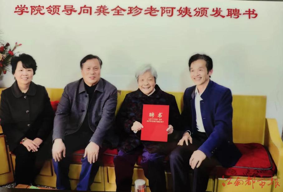 谈及设立之初的想法,江西财经大学现代经济管理学院原党委书记纪春福告诉记者,“在莲花县走访参观了龚全珍工作室后深受感动,感觉龚全珍老人的事迹对当代大学生特别有意义。”2018年年末,揭牌仪式后,学院特意前往萍乡莲花县为老人龚全珍送去颁发聘书。回忆第一次见“老阿姨”龚全珍的场景,纪春福印象特别深刻。此时老人已是95岁高龄。但见面的时老人穿戴整齐,精神劲头很好,胸口佩戴了一枚党章。
