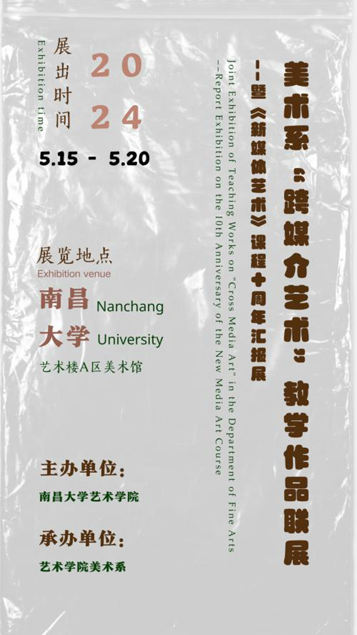 2024年5月15日上午9时30分,南昌大学艺术学院主办的“美术系‘跨媒介艺术’教学作品联展——暨《新媒体艺术》课程十周年汇报展”在南昌大学美术馆隆重开幕。艺术学院党委书记晏国彬致辞并宣布展览开幕,美术系师生代表四十余人参加了开幕式。展览汇聚了历届本科生与研究生的优秀作品,集中展示了南昌大学艺术学院美术系在跨媒介艺术教学所取得的丰硕成果。展览由美术系彭欣副教授与余晖博士共同策划和组织实施,两位老师长期从事当代艺术创作与艺术理论研究工作,对参展作品的创作观念、媒介形式、材料运用、审美表达等方面进行了指导。同时,本次展览也是美术系《新媒体艺术》课程十周年教学成果进行总结汇报。展览作品类型丰富多样,涵盖了综合材料绘画、装置艺术、新媒体艺术等多种艺术形式,不仅包括历届学生优秀作品,也呈现了十年来的教学经验。