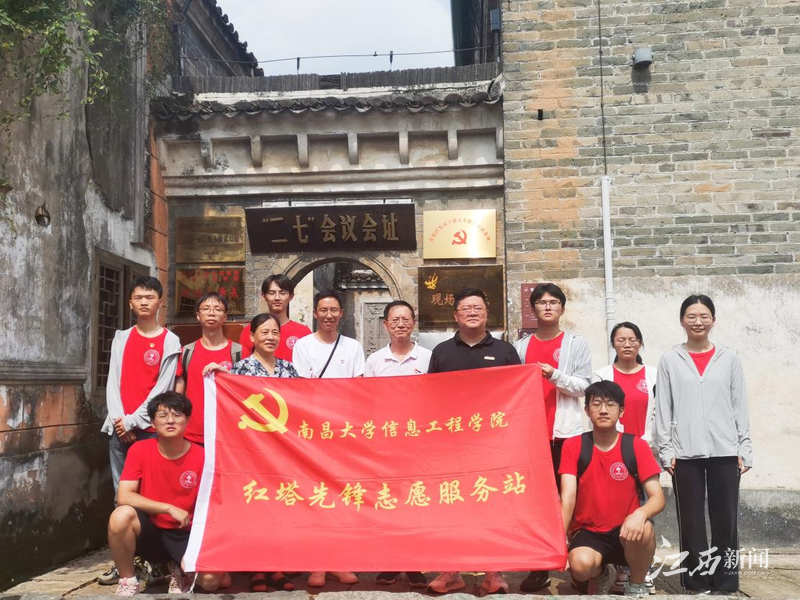 近日,在吉安市青原区的近代红色革命的见证地渼陂古村里,来自南昌大学信息工程学院“红塔”先锋志愿服务站的12位师生党员们在这里开展了一场别开生面的主题党日活动。