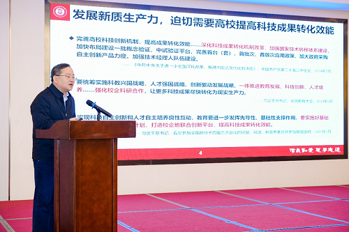 主旨报告环节,雷朝滋以“加强企业主导的校企协同创新,加快成果转化服务高质量发展”为题作报告。他指出,要深入贯彻习近平总书记在全国科技大会和全国教育大会上的重要讲话精神,推动科技创新与产业创新深度融合。要发挥企业“出题人、答题人、阅卷人”作用,提升高校科研组织能力和成果供给质量,优化成果转化政策,深化“千校万企”协同创新行动,建立企业出题、校企共同答题、市场检验的长效机制,为科技成果高效转化、创新链与产业链有效衔接提供实践指导。