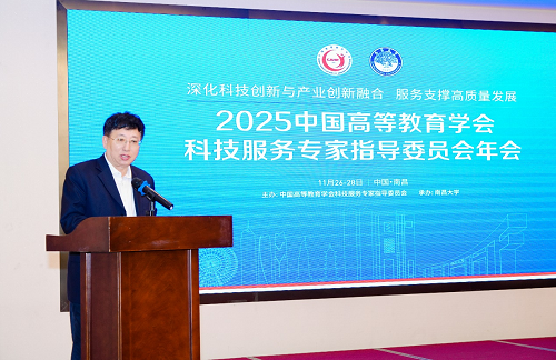 11月26日-28日,由中国高等教育学会主办、南昌大学承办的2025中国高等教育学会科技服务专家指导委员会年会在南昌召开。本次年会以“深化科技创新与产业创新融合,服务支撑高质量发展”为主题。学会副会长、科服委主任委员、中国工程院院士周玉,科服委执行副主任委员、中国产学研合作促进会常务副会长、教育部科学技术与信息化司原司长雷朝滋,学会副会长、秘书长李楠,南昌大学党委书记罗嗣海,南昌大学校长、中国科学院院士陈晔光,江西省教育厅副厅长刘小强,南昌市人民政府副秘书长王耀等200余位科服委委员和高校代表参加会议。