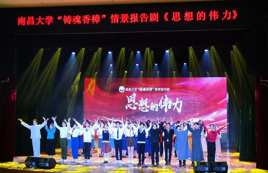 ▲南昌大学艺术学院师生精心创作、编排情景报告剧《思想的伟力》