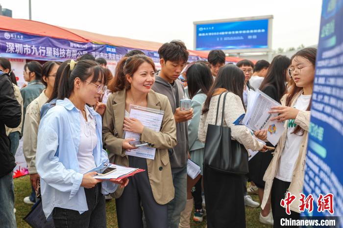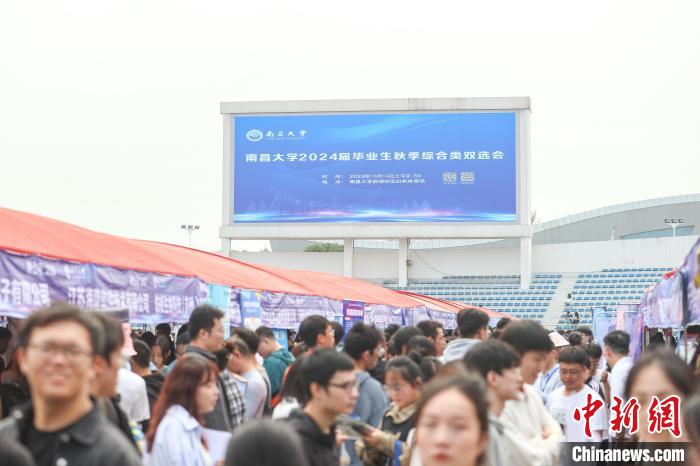 10月14日,江西南昌,南昌大学2024届毕业生秋季综合类双选会在南昌大学前湖校区举行,来自各地高等院校、事业单位、上市公司等680余家企事业单位参会,需求人数达3.9万余人。双选会现场人潮涌动,众多南昌大学本校毕业生和外校毕业生在寻找工作机会。