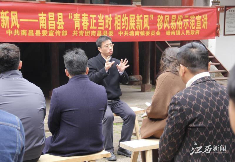 为深入学习宣传贯彻党的二十大精神,积极培育和弘扬社会主义核心价值观,引导广大青少年争做移风易俗的践行者、引领者。3月3日,团江西省委宣传部组织省青年讲师团成员走进南昌县塘南镇令公庙开展“小板凳”上话新风——移风易俗主题宣讲,30余名赣鄱乡村好青年共聆听宣讲。