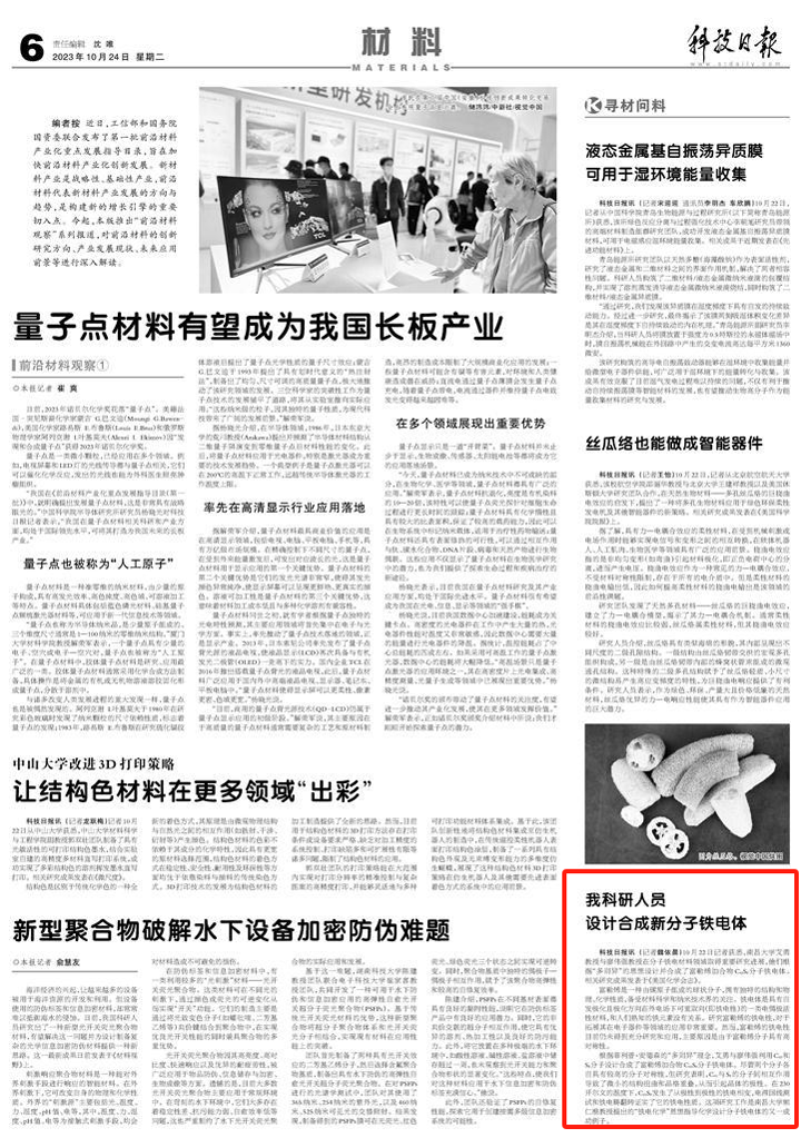 10月22日记者获悉,南昌大学艾勇教授与廖伟强教授在分子铁电材料领域取得重要研究进展,他们根据“多则异”的思想设计并合成了富勒烯加合物C60S8分子铁电体。相关研究成果发表于《美国化学会志》。