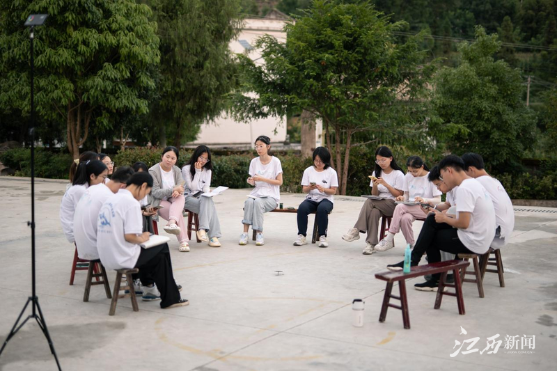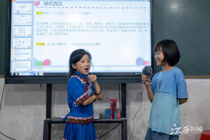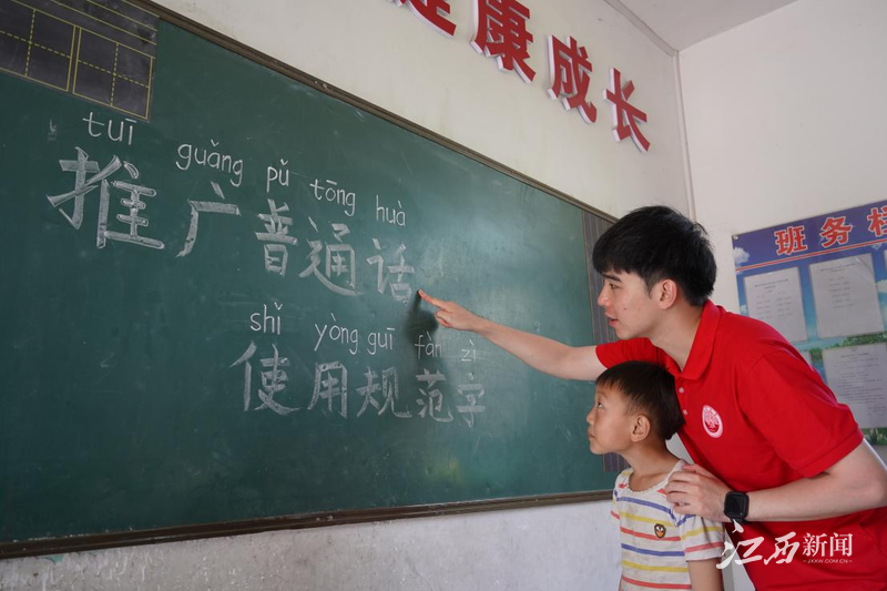 近日,南昌大学物理与材料学院香樟流萤支教队前往贵州省铜仁市楠杆乡金盆村金盆小学开展为期21天的支教活动。为落实推广普通话的基本语言政策,执行“推普宣传”的国家语言文字方针政策,带领学生领略语言魅力,队伍于支教期间开展普通话推广与宣传活动,并开设配音朗诵课程加强学生语言理解水平与运用能力,为乡村振兴提供语言基础。