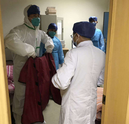同时,医务人员的自身防护也同样重要。“脱鞋套、手消、脱第一层隔离衣,转身、喷酒精 ……”影像科里每天都能听见主管护师杨铁琴的声音:“我要尽自己的专业所能,指导每一个技师穿脱隔离衣,为科室的院感控制,筑起一套生命防线。”