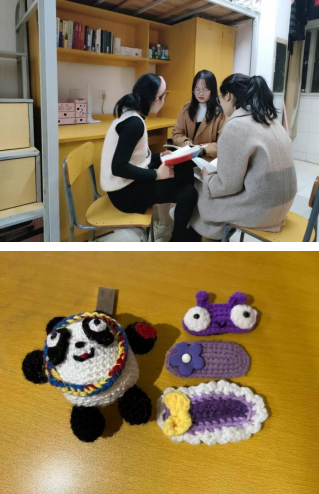 居寝这段时间她们开起了“寝室读书会”,积极讨论书中理论观点,在知网上搜寻相关文献进行研读,还不时与导师在线上开展研讨。闲暇之余,她们化身能工巧匠,开始自制手工,冰墩墩、小夹子等等,都是她们心灵手巧的体现,寝室内的绿色植物也被她们照顾得很好,在阳光下焕发勃勃生机。
