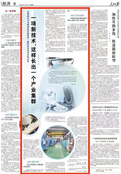 编者按:1月15日,《人民日报》以《江西南昌大力推动硅衬底发光二极管蓝光技术开发应用 一项新技术,这样长出一个产业集群(一线调研)》为题,报道南昌大学硅衬底LED蓝光技术的研发及产业化情况。详情如下: