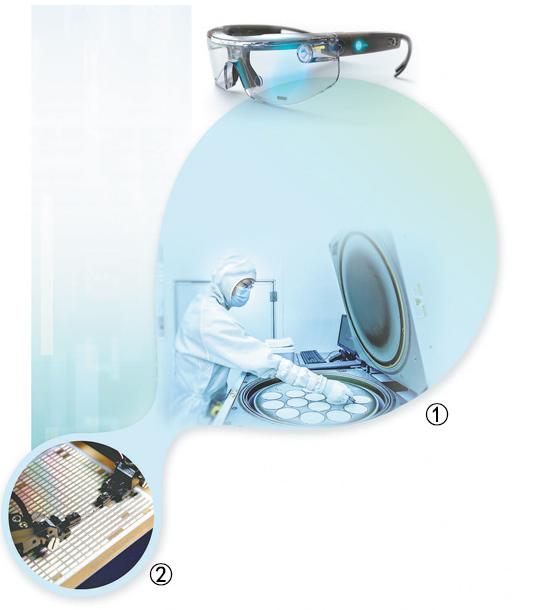 图①:晶能光电芯片车间员工在操作设备进行长膜工艺流程。