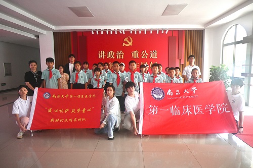 7月4日上午,南昌大学第一临床医学院“医心相护筑梦童心”暑期新时代文明实践队组织永修县吴城镇中心小学的留守儿童们来到王经燕纪念馆,开展红色教育,探寻烈士生平事迹,致敬烈士不朽功勋。实践队队员和留守儿童们来到王经燕先烈雕像处,进行了默哀和鞠躬。