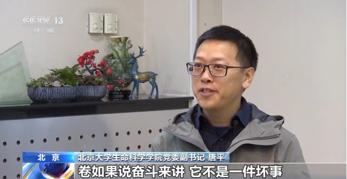 北京大学生命科学学院党委副书记 唐平:卷如果说奋斗来讲,它不是一件坏事,但内卷的话,在一些无足轻重的地方,付出了不必要的精力。当时大家比较一致的一个观点,知识学习已经掌握比较充分的情况下,为了卷面的成绩,从一个85分,往上还有90分95分,在后面的这些高投入但是低回报,我们觉得是一个比较强的内卷。