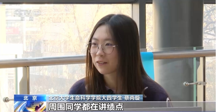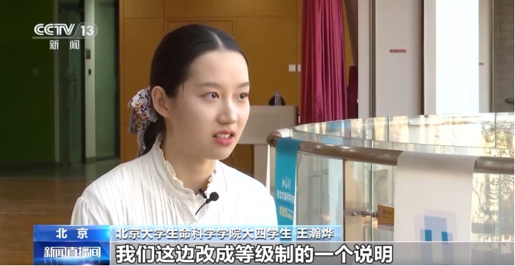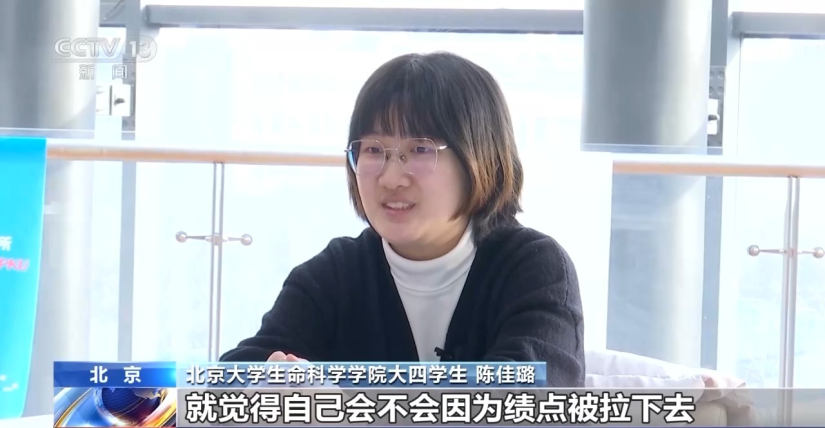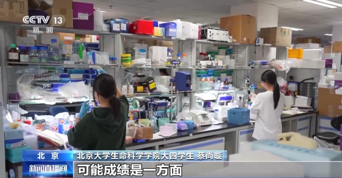 北京大学生命科学学院大四学生蔡尚璇:明确知道了未来的考核标准并不是以成绩为唯一导向的话,这个时候就没有卷绩点的情况了,可能成绩是一方面,但比较重要的一方面还是在科研的素养,因为生命科学是一个实验科学,我觉得我投入到实验室的时间更长了。