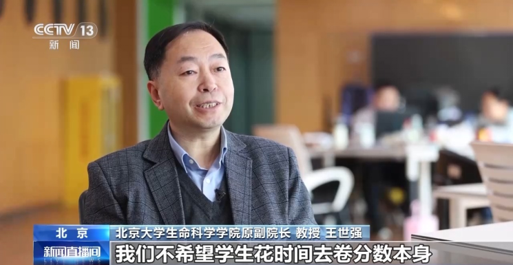 北京大学生命科学学院原副院长 教授 王世强:培养学生的角度,我们不希望学生花时间去卷分数本身,而是希望在学了基本原理之后,能够有更多的实践环节,能够运用这些原理去解决实际问题,有更多的时间去参加一些比如说交叉学科的学习,在这个过程中锻炼他们的创新能力,解决比如现在卡脖子问题的这样一些素质。