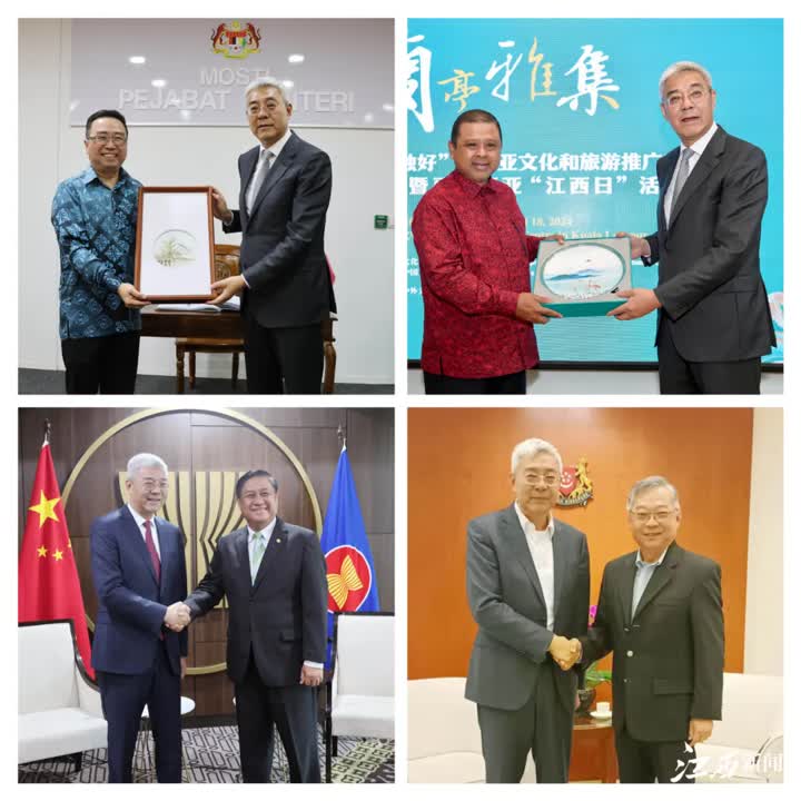 国之交在于民相亲,民相亲在于心相通,江西与东盟国家地方交流交往日益密切。访问期间,尹弘分别与中国驻马来西亚大使欧阳玉靖、中国驻印度尼西亚大使陆慷、中国驻新加坡大使曹忠明、中国驻东盟使团公参傅峰山举行工作会谈,并会见了马来西亚“一带一路”委员会、印尼中华总商会等知名商会侨团,出席“中马建交50周年”庆祝活动,密集开展高层会晤、联谊座谈等系列活动,广泛接触政商各界人士,有力深化我省与马来西亚沙巴州、印度尼西亚巴厘省友好关系,在加强经贸合作、拓展友城关系、促进人文交流等领域务实合作取得积极成果。尹弘希望各方继续发挥资源渠道优势,全面深化江西与东盟的交流合作,促进人文交流互鉴,共同谱写“一带一路”地方合作新篇章。各方一致表示,江西省代表团的来访,充分体现江西对同东盟国家地方交流合作的高度重视,期待与江西进一步拓展合作领域和合作空间,积极推动东盟和中国友好关系实现新的发展。(图片由省外办、省文旅厅提供)