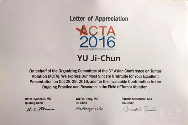 本网讯(记者 陈万志)2016年第三届亚洲肿瘤消融大会即3rd Asian Conference of Tumor Ablation,2016(ACTA)于10月28-29日在韩国首尔举行,南昌大学第二附属医院甲状腺外科主任余济春教授受邀出席此次大会并做大会发言。此次大会不仅云集了来自中国、韩国、日本、新加坡、马来西亚、泰国、印度等亚洲国家的大学教授,更是邀请到了欧美国家的肿瘤消融专家。