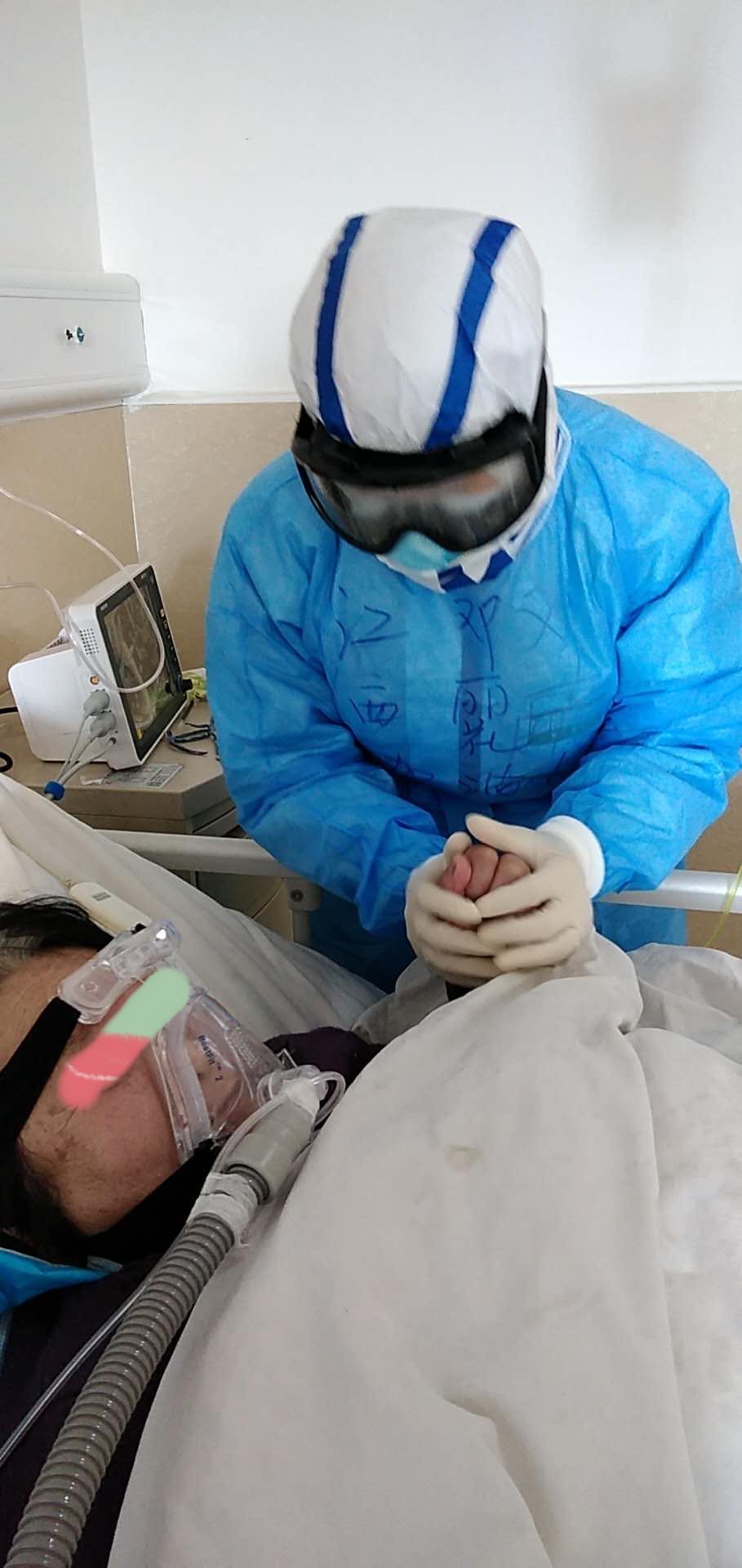 前两天,病区来了一个老太太,患有高血压、高血糖、肺功能不全,又感染了新冠肺炎。昨晚(2月18日晚),老太太病情突然恶化,呼吸衰竭。医护团队抢救至深夜。今早查房时,她用手向我们比了个OK的姿势。