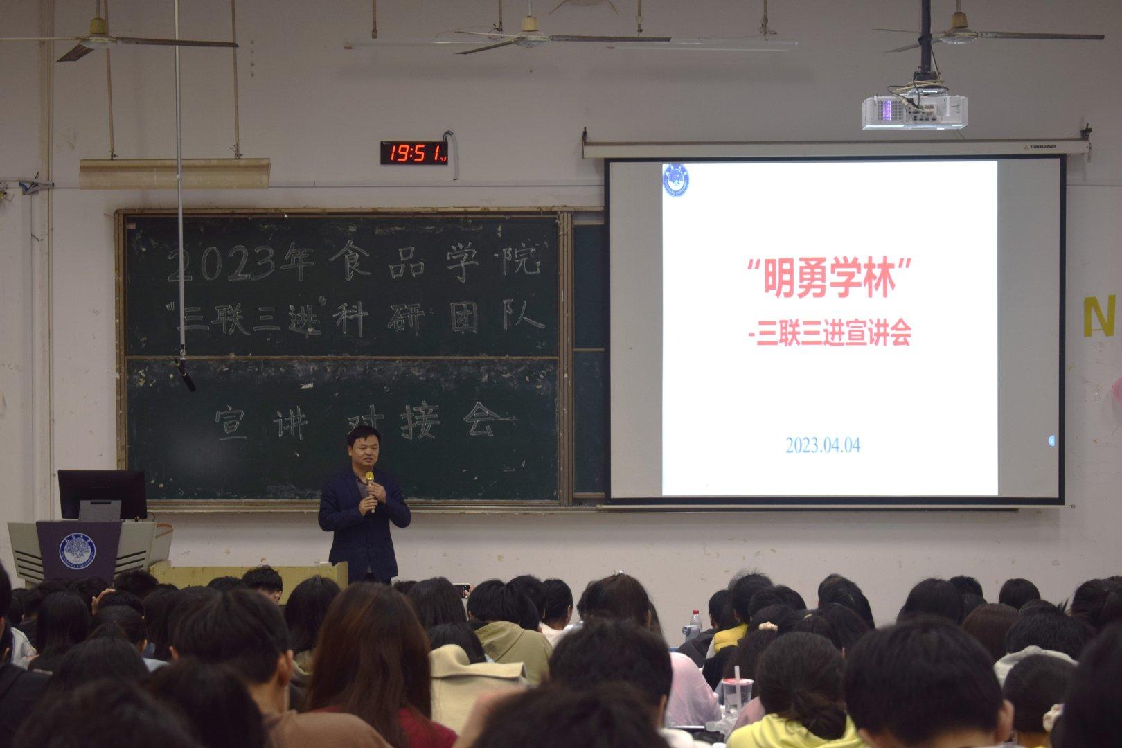 “三联三进”师生宣讲对接会只是南昌大学食品学院科研育人实践的一个侧影。近年来,南昌大学食品学院以建设世界一流学科为中心,以科研促进教学,以教学带动科研,从学生入校开始到毕业,开展“院长第一课”、专业导师见面会、参与创新创业竞赛、评选年度人物等一系列活动,着力激发学生科研意识与创新创业活力。