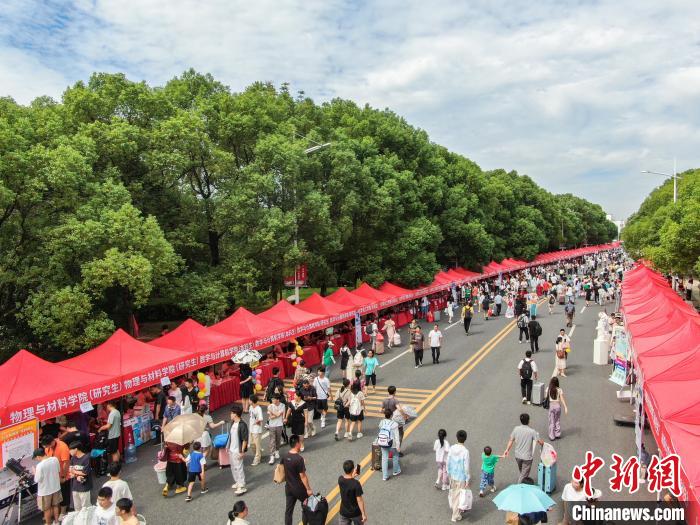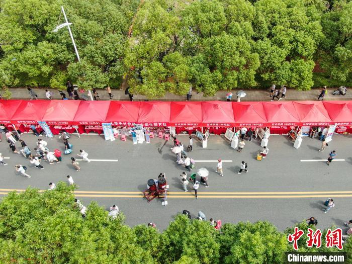 图为航拍南昌大学2023级新生报到区,众多新生抵校报到