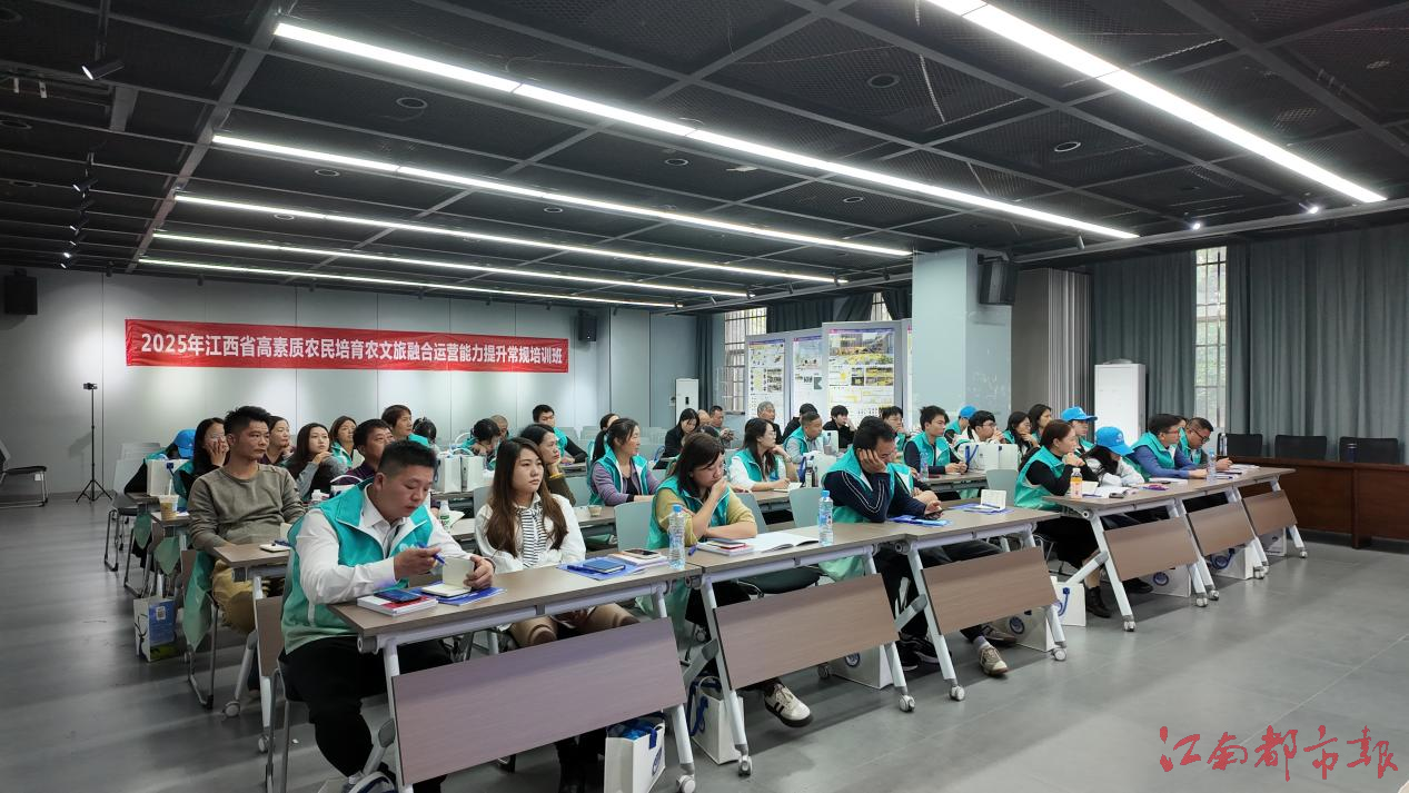“我们创新开设‘农文旅融合运营能力提升班’,构建‘理论筑基+现场实操+成果转化’全链条培养体系。”学院副教授李名飞介绍。该培训班由江西省农业农村厅主办、南昌大学承办,汇聚多学院师资,通过案例分析、实地观摩、互动研讨、专题答疑等,聚焦“农业+文化+旅游”新业态,针对性培育农文旅融合运营带头人。“通过课程,我们深刻理解了文旅服务的规范与要求,逐步掌握了独立应对市场变化、优化客户体验、处理运营问题的实战能力。”一名学员感慨道。