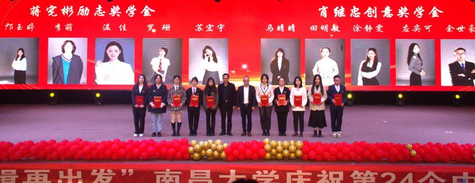 11月8日晚,南昌大学庆祝第24个中国记者节文艺晚会“启航新征程、奋楫再出发”开幕。晚会前举行了“蒋宪彬励志奖学金”“肖继忠创意奖学金”颁奖仪式,晚会中穿插了“新火之星”学生先进典型颁奖仪式,以勉励广大新传学子向先进模范学习,争做新时代优秀青年。