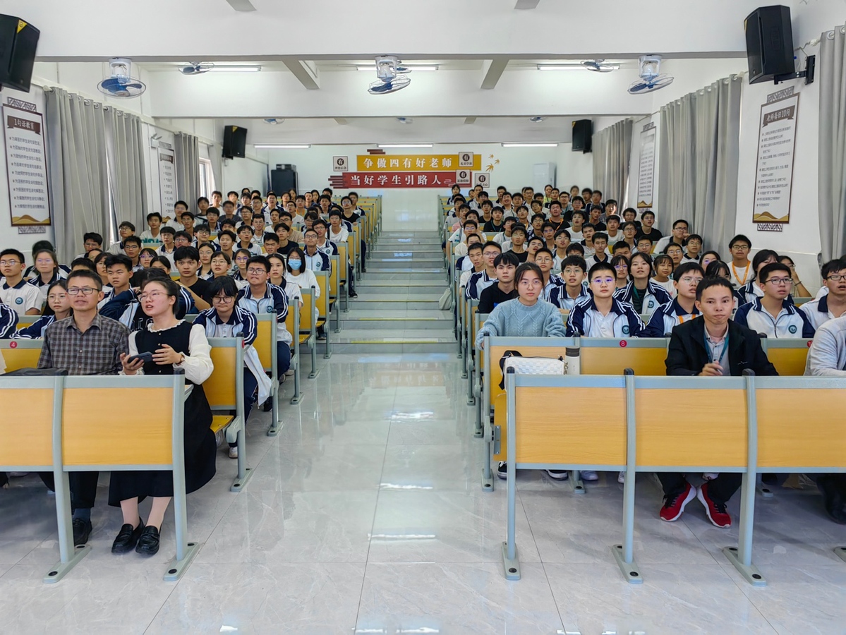 一首首爱国视频歌曲缓缓拉开科普讲座的序幕。王光绪研究员以《光与照明》为题,将生活实例将光学和照明科普结合,绘声绘色地向同学们讲解了光的定义、光学发展及在照明领域中的应用以及南昌大学LED代表性成果等知识,带领同学们进入了应用广泛的照明世界。舒富文教授为同学们作《宇宙的“声音”:引力波》科普讲座,通过大量的音视频图片生动介绍引力波的概念、发现过程、探测手段以及未来发展,让同学们对引力波有了更直观的认识。除了科学普及专业知识,两位主讲专家十分注重把思政元素有机融入科普报告中,润物细无声,引导青少年学生从小树立科技报国壮志,努力成长为堪当民族复兴重任的时代新人。