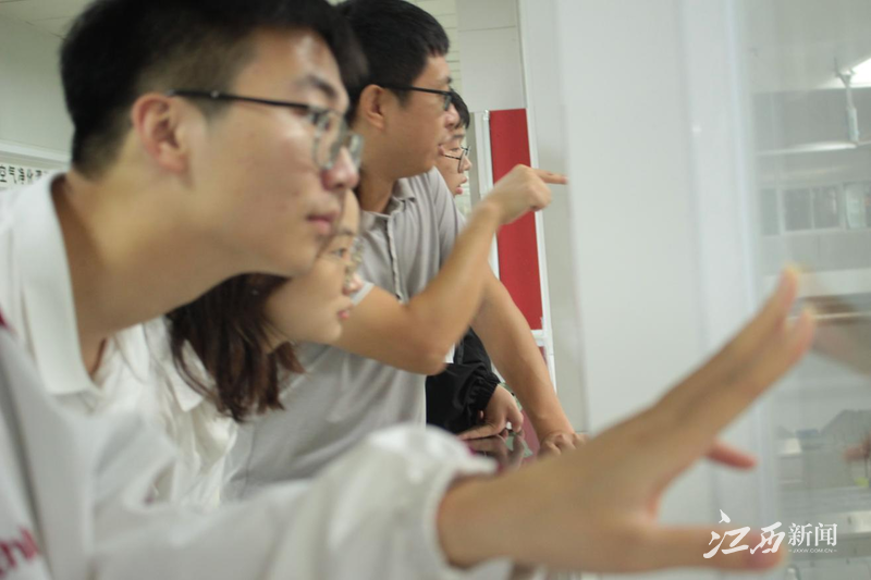▲团队成员与导师、企业管理人员在办公室进行交流探讨