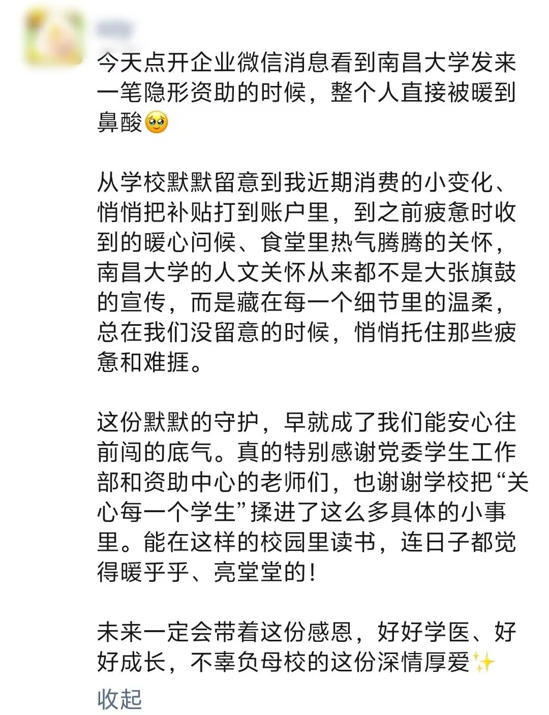 这份守护,更在于一种“安静”的关怀方式。当补助悄悄到账,当那句“好好照顾自己”的叮嘱叩响心弦,学生们感受到的不仅是经济上的帮助,更是精神上的慰藉与尊重。