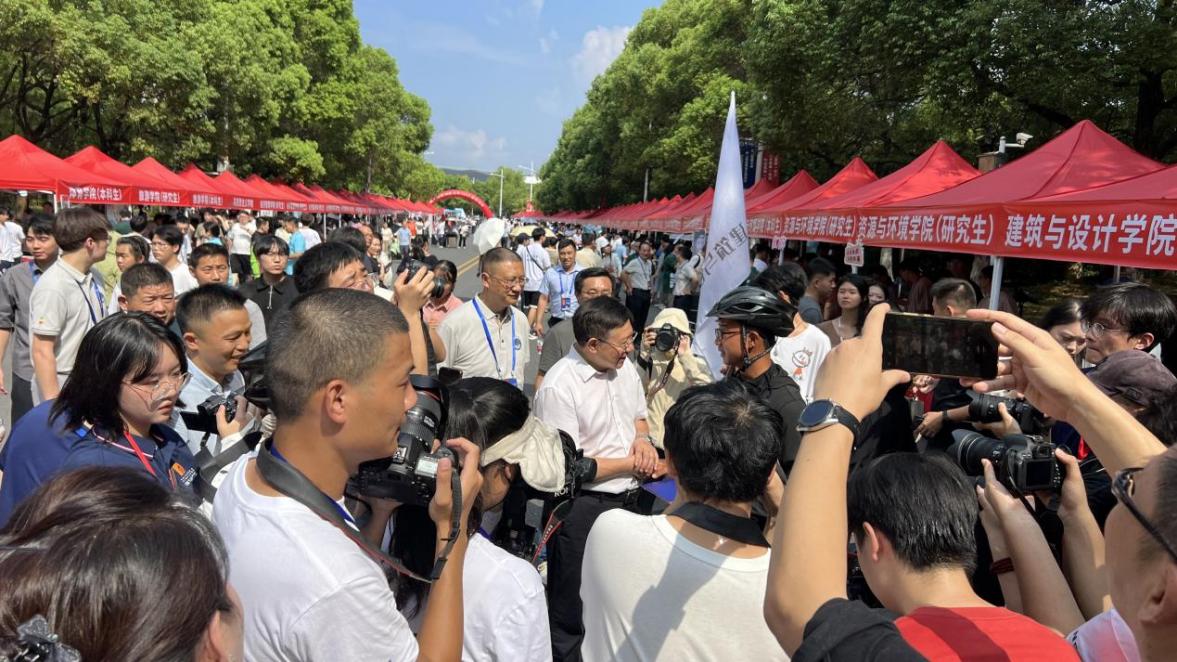 图为南昌大学党委书记罗嗣海慰问王家一铭采访现场。