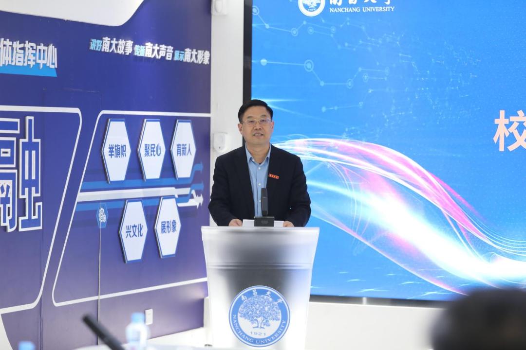 与会领导共同为融媒体中心揭牌,南昌大学融媒体中心正式启用。