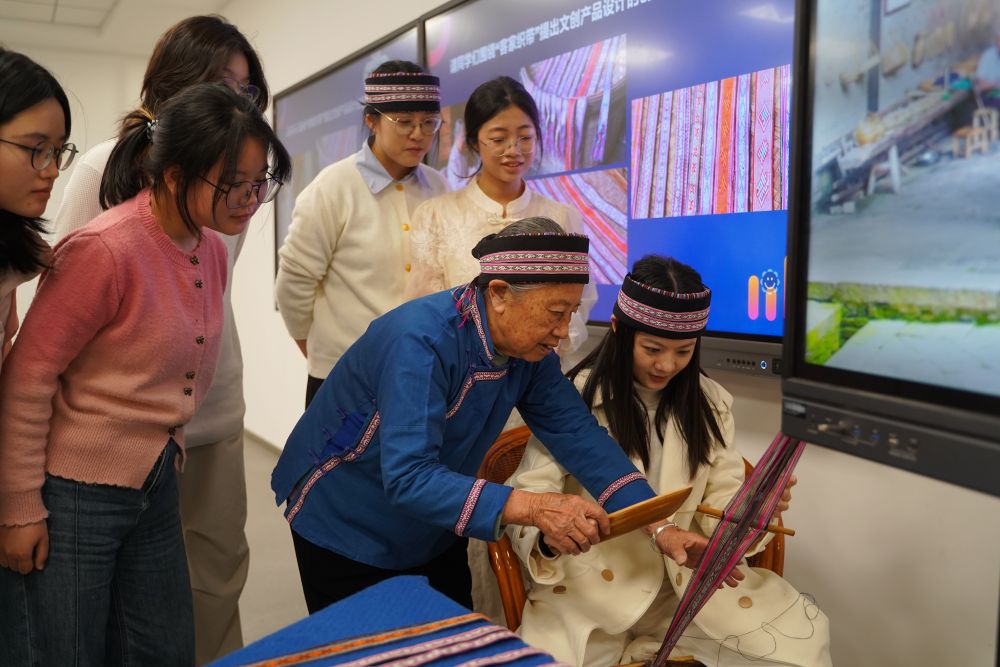南昌大学学生课上体验非遗织带编织在“汉语方言词汇调查及其在文创设计中的运用”课堂上,一场围绕龙南客家织带的“头脑风暴”正在进行。学生们在课程教师的引导下,与非遗织带手艺人黄竹英面对面交流,运用专业方法记录与织带技艺相关的方言词汇,在真实的语言环境中开展田野调查实践。
