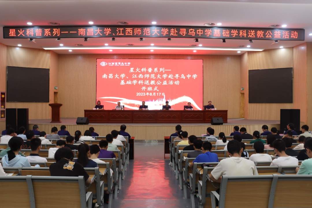 8月16-17日,南昌大学星火科普志愿服务队联合江西师范大学学科团队前往江西省寻乌中学开展基础学科送教志愿服务活动。此次帮扶送教活动旨在将主题教育与科普教学活动相结合,帮助赣南县域高中学科突破教学重难点,树植学生爱党爱国、强国有我的信念,更好地培养新时代学科拔尖创新人才。