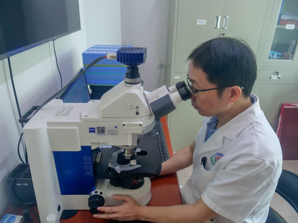 一台显微镜、一个电脑工作站、几十张病理切片——走进南昌大学第一附属医院罕见病中心主任洪道俊的办公室,门口摆放的实验桌引人注目,每周他和学生都会在这里集中“读片”,研讨近期接诊罕见病患者的病理切片。