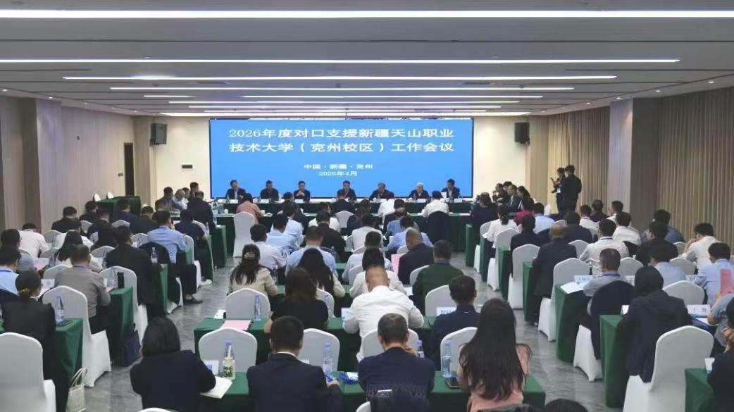 本网讯(部省合建与国内合作办公室)4月17日,2026年度对口支援新疆天山职业技术大学(克州校区)工作会议召开,会议深入贯彻落实党中央关于对口援疆工作的重大决策部署,系统总结对口支援新疆天山职业技术大学(克州校区)阶段性成效。