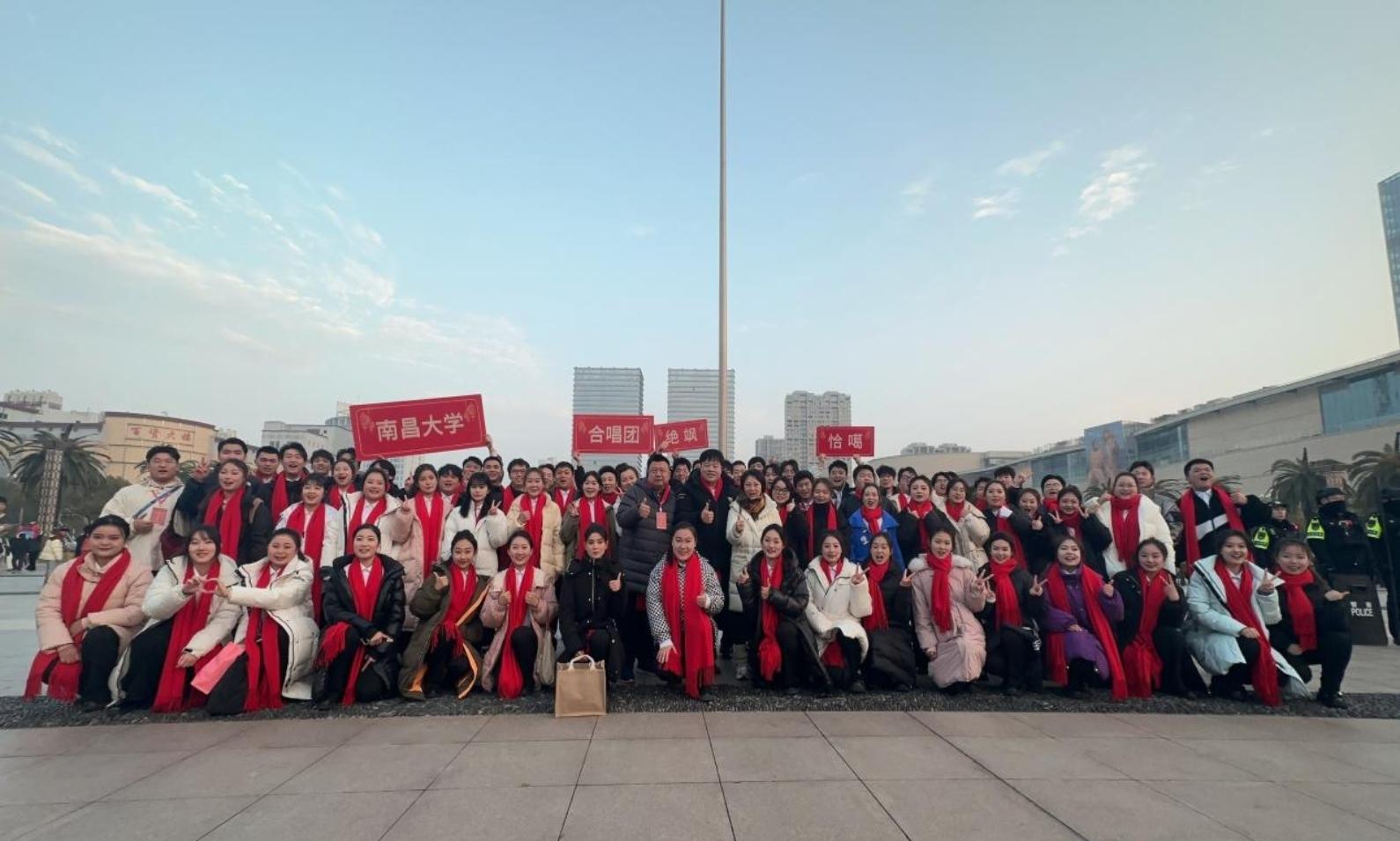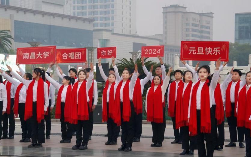 表演结束后,伴随着雄壮的国歌声响起,鲜艳的五星红旗冉冉升起,高高飘扬。青春的热血在国旗下沸腾,与破晓的阳光、新年的祝福交相辉映,迸发出璀璨的光。据悉为了筹备此次活动,艺术学院师生近一个多月来利用课余时间排练曲目。活动前几日,披星戴月,每日凌晨四点前往八一广场彩排,不畏严寒,持之以恒地精心打磨作品,希望能有完美的呈现。合唱团的精湛演唱和充满热情的互动,为新年的到来增添了无限的喜悦和祝福。