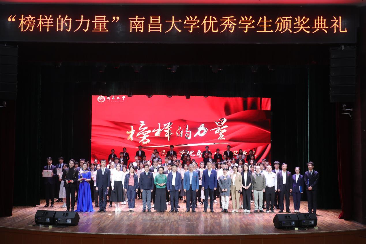 本网讯(学生工作处 付自强)青春榜样,菁英领航。5月10日,学校举行“榜样的力量”南昌大学优秀学生颁奖典礼,表彰国家奖学金获得者、最美大学生(含提名)、三好学生标兵、国家励志奖学金获得者、先进班级等优秀学生和班集体。校党委书记罗嗣海、副校长刘耀彬出席典礼并为优秀学生颁奖。