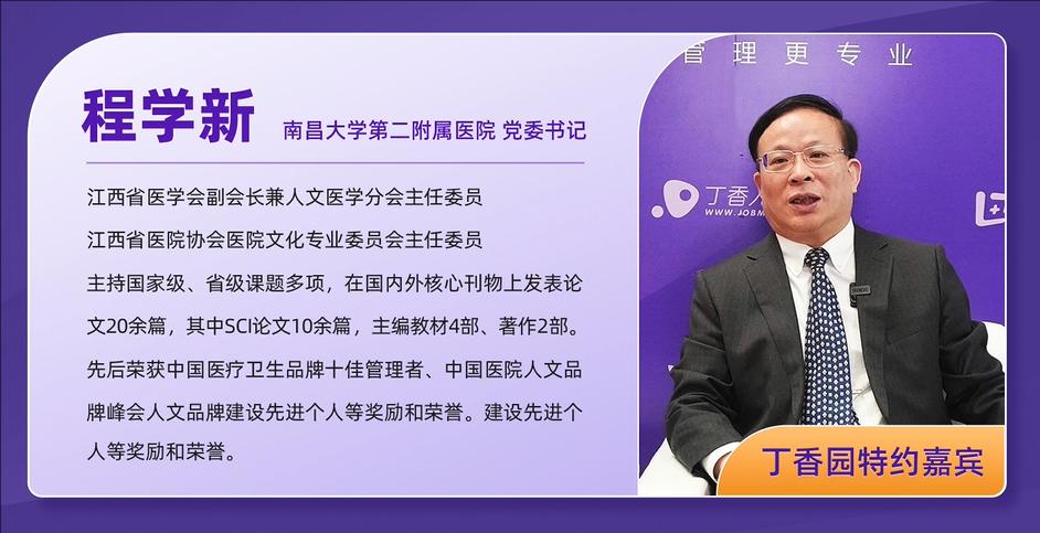 编者按:近日,丁香园专访我校第二附属医院党委书记程学新,以《专访南大二附院党委书记程学新:医学人文柔性力量如何助力医院高质量发展》为题展示了南昌大学第二附属医院在快速发展的同时,始终坚守公益初心,注重医学人文建设,塑造独具特色的医院文化品牌。原文如下: