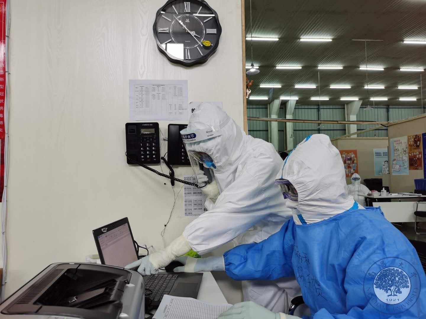 不知不觉,已到了江汉开发区方舱医院正式开舱工作的第12天。我和小伙伴们都早已适应了穿着防护服工作的模样,呼吸困难、气逼、胸闷的感觉好了很多。看着一批批患者在医务人员的精心治疗和悉心护理下出院,亲手送上感谢信,与他们合影,我的内心的自豪感和幸福感无以言语。与这些“前线”医务人员不同的是,我和组员们并不直接护理患者,我们是舱内的“大总管”,是防控工作的“勤务兵”,负责协调管理舱内所有各类后勤保障事务,只愿一起打赢这场防疫阻击战。