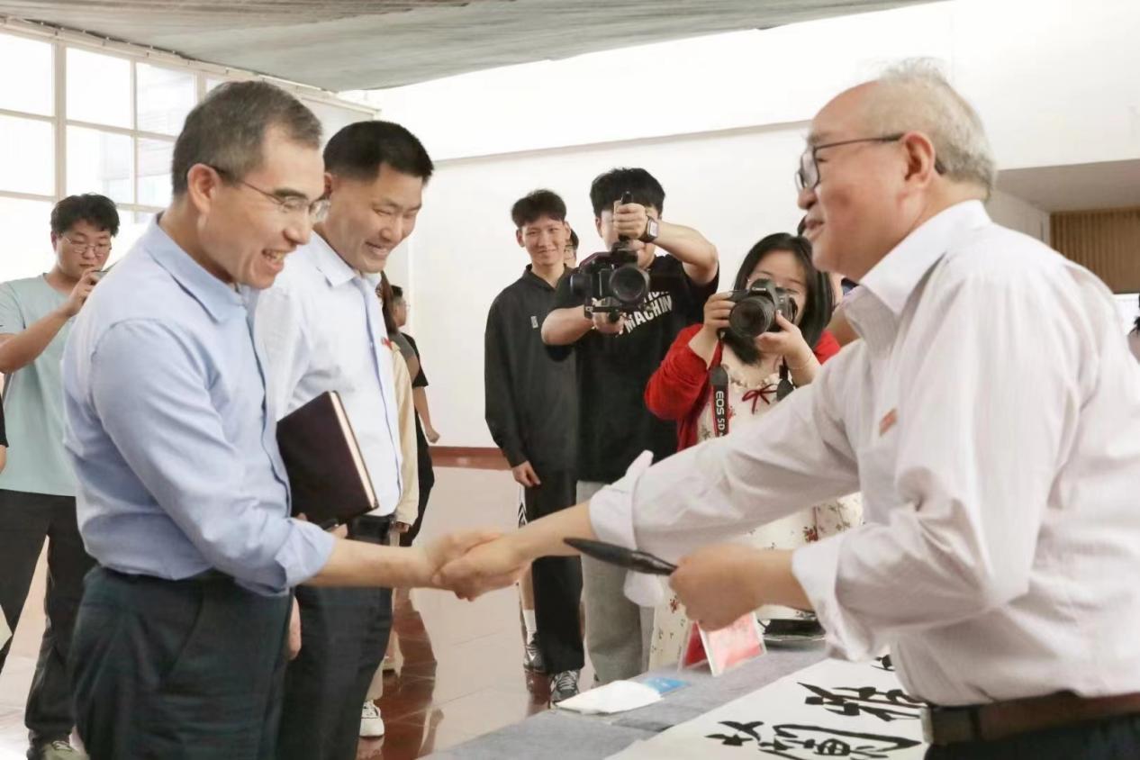 本网讯(南昌大学教工书画协会)5月10日,由南昌大学工会、南昌大学教育技术与教学资源中心主办,南昌大学教工书画协会承办的书法笔会活动在慧源楼顺利举办。校长、中国科学院院士陈晔光出席活动,学校书法名家、教工书画协会会员和南昌大学路漫书法社学生骨干受邀参加。