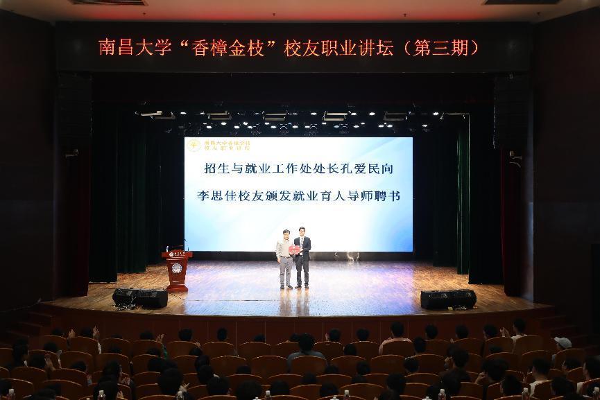 校友职业讲坛设立后,立即得到广大校友的积极响应,大家纷纷表达希望返校作分享交流的意愿。为此,学校就业部门还专门出台了《南昌大学“香樟金枝”“香樟玉叶”校友职业讲坛的管理办法》,“香樟金枝”职业讲坛由学校层面统一组织,参加讲坛的校友均聘为学校就业育人导师;“香樟玉叶”职业讲坛则由各学院自主开展,学院可根据校友意愿自主聘为行业导师或就业导师。