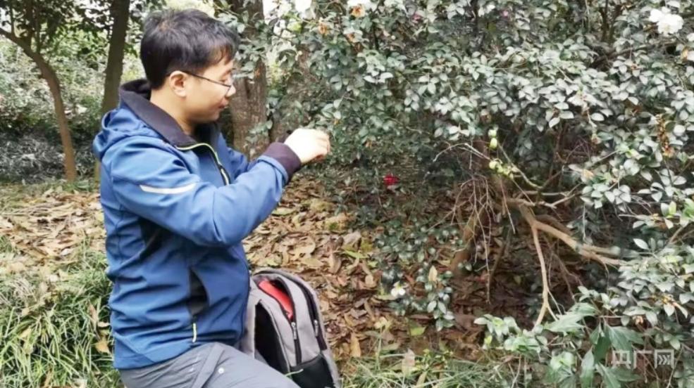 张剑进行油茶叶片营养分析样本采集(央广网发 钟欢 摄)