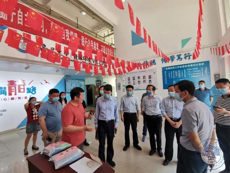 周亮一行先后在前湖校区一号门、学生食堂、学生宿舍、校医院等地实地调研指导,详细询问了解学生入校体温检测程序、学生返校准备工作情况、学校食堂防控措施、校园相关区域消杀流程、学校疫情防控应急预案等,现场查看学校疫情防控相关记录、校园应急处置场所、疫情防控储备物资。周亮对学校按照常态化防控要求,做好学生返校学习相关工作,落实主体责任,落实落细防控措施表示了肯定。