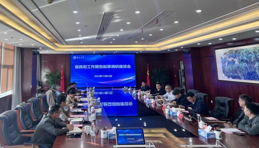 本网讯(政策研究与综合改革办公室)11月22日,由省政府研究室主办、南昌大学政策研究与综合改革办公室协办的省政府工作报告起草调研座谈会在我校召开。省政府研究室二级巡视员黄芳芳、我校副校长聂少平出席会议。